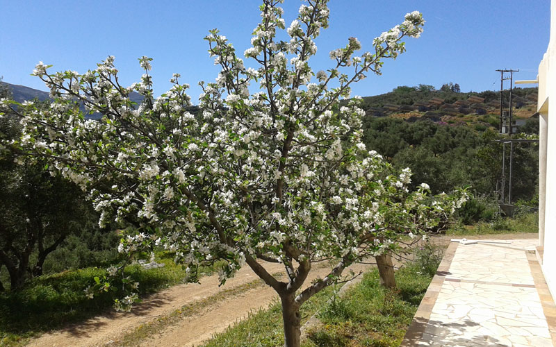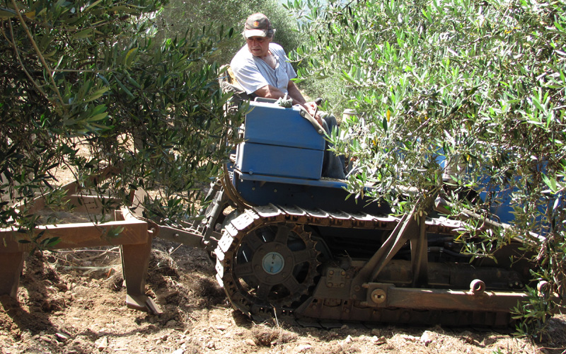 Αρχίζοντας τις καλλιεργητικές φροντίδες, μεγάλη σημασία έχει η ποιότητα του εδάφους το οποίο φροντίζουμε να είναι ισορροπημένο. Υπάρχει παντελής απουσία χρήσης φυτοφαρμάκων και έτσι παρατηρούμε πλούσια εδαφοπανίδα και χλωρίδα, χαρακτηριστικό οικολογικής ισορροπίας. Η λίπανση γίνεται με οργανικά λιπάσματα, με κοπριά αιγοπροβάτων τα οποία διατρέφονται στο αγρόκτημα, με θρυμματισμό κλαδεμάτων τα οποία χυμοποιούνται κατευθείαν στο έδαφος, και με τη λεγόμενη “χλωρή λίπανση” ενσωματώνοντας στο έδαφος ζιζάνια και διάφορα ψυχανθή όπως βίκος κ.α. Αργά την άνοιξη οργώνουμε ελαφρά το έδαφος και έτσι το καλοκαίρι ο ήλιος δίνει στο έδαφος ενέργεια και πολύτιμα στοιχεία. Το φθινόπωρο, με τις πρώτες βροχούλες, ένα πράσινο χαλί εμφανίζεται το οποίο προστατεύει το έδαφος στη διάρκεια του χειμώνα από τη διάβρωση.