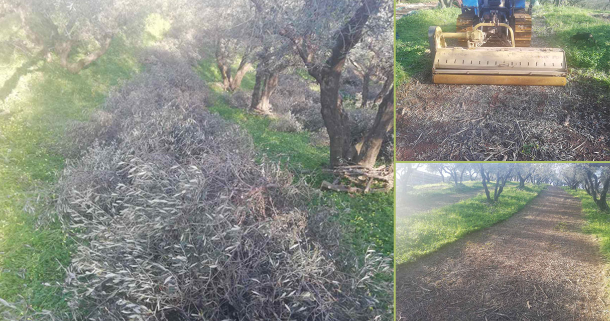 Σήμερα ξεκινάμε την καταστροφή των κλαδεμάτων, η καταστροφή γίνεται αποκλειστικά με θρυμματιστή. Αυτό γίνεται για αποφυγή ασθενειών και εμπλουτισμό του εδάφους με οργανικά στοιχεία των κλαδιών